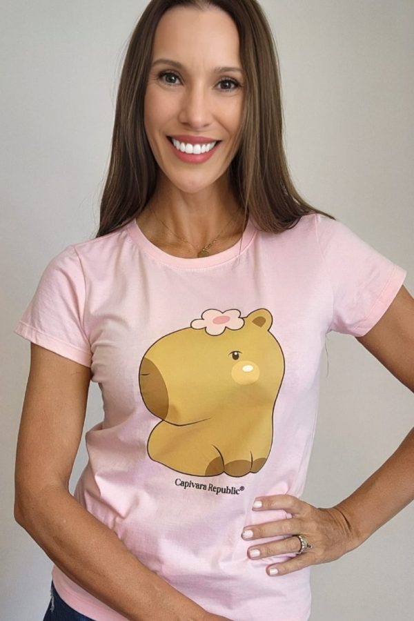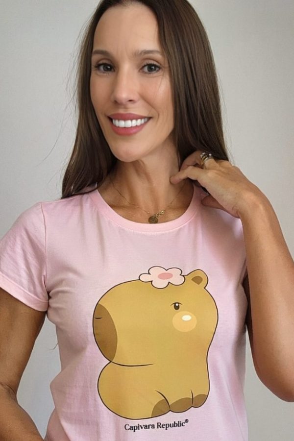 Baby Look Capivara Republic® – Capi Flor na Cabeça – Cor de Rosa