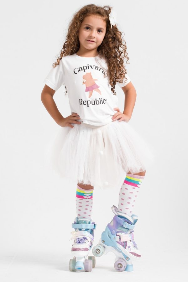 - Em homenagem à arte, em especial à dança, temos esta estampa da Capivara dançarina com seu tutu espalhando glamour e elegância! Apesar de grande, a Capivara é muito graciosa e seus movimentos são delicados, tanto em terra, quanto na água, porém, quando se sente ameaçada é muito rápida e perspicaz nas suas fugas!