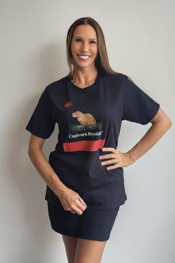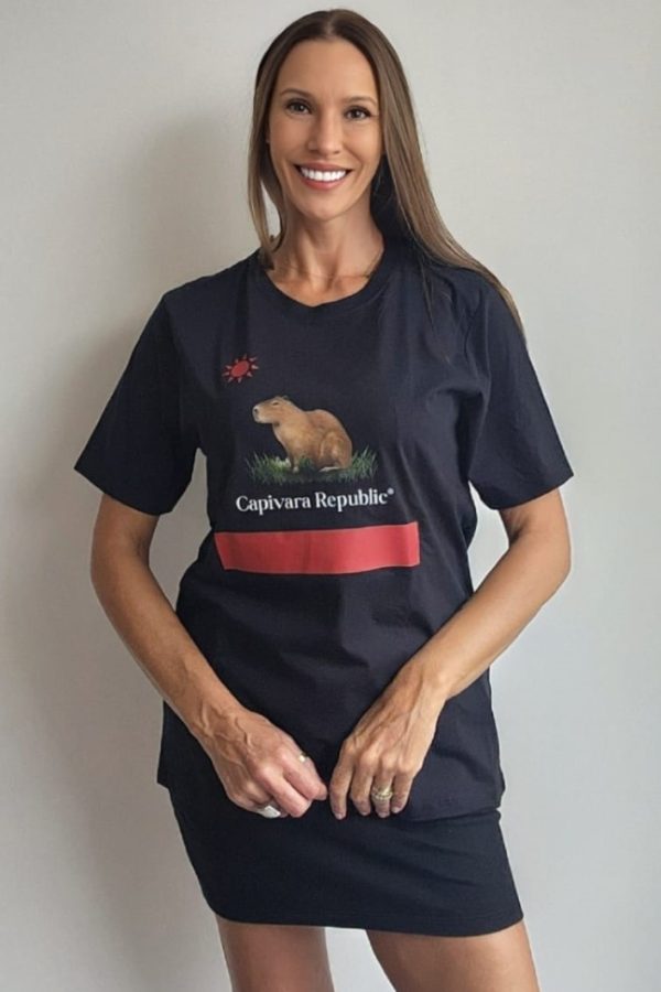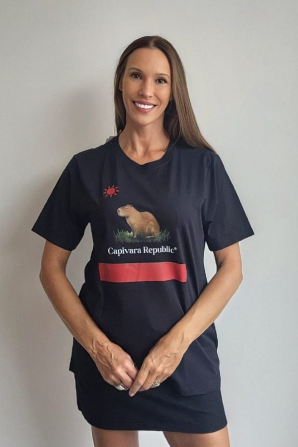 Esta foi nossa primeira estampa! Assim nasceu a Capivara Republic! Víamos várias cidades e estados homenageando a fauna local, inspirados respeitosamente na Bandeira Californiana. Nossa amada Capivara também merece esta honra! Decidimos ampliar para uma Republica inteira dedicada às Capivaras – Capivara Republic