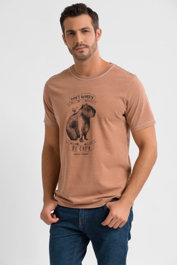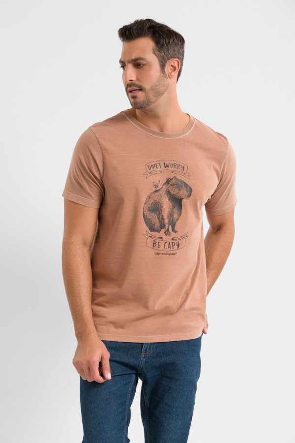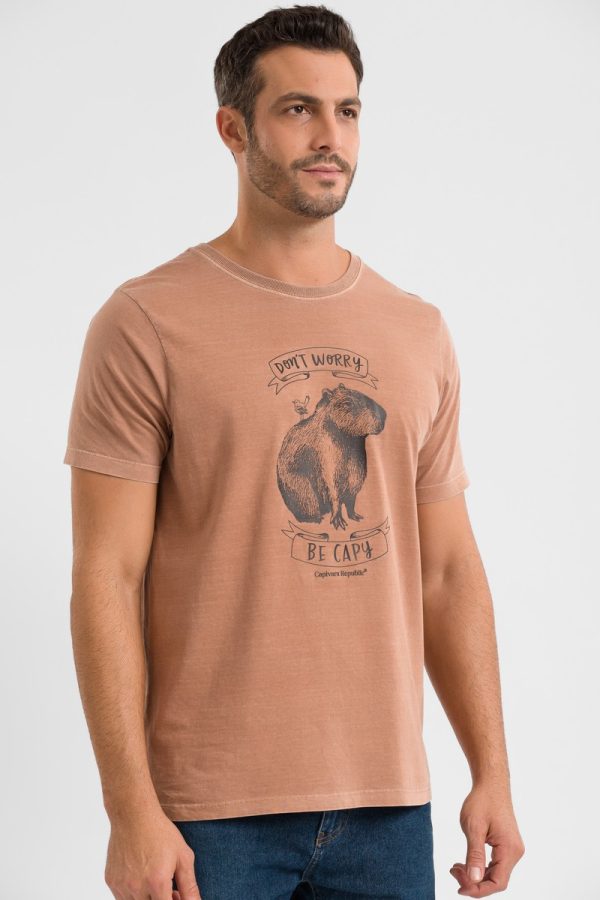 Camiseta Capivara Republic® – Be Capy Marrom Estonado