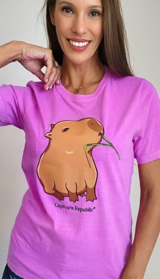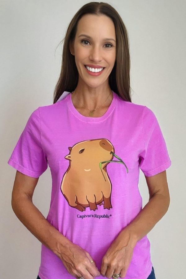 Esta estampa Capi Capim é primeira no nosso best-seller! Tanto adultos, quanto crianças escolhem a Capi Capim para ser sua primeira tee da coleção Capivara Republic!