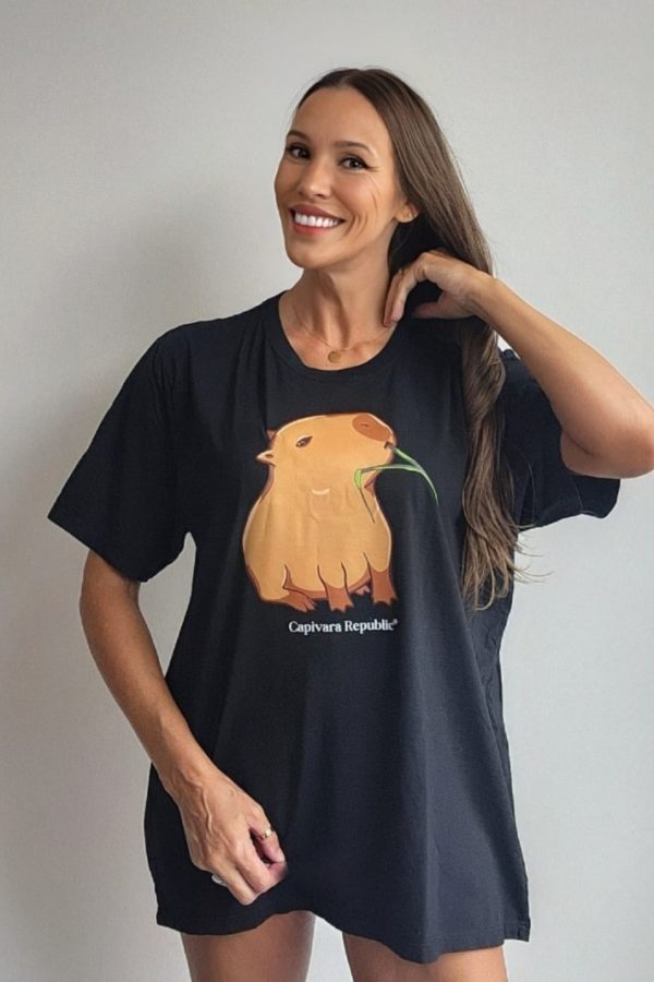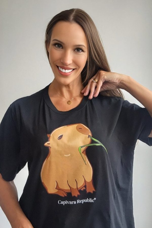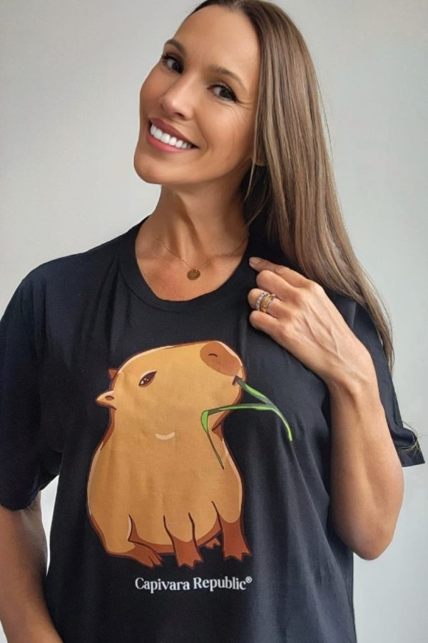 Esta estampa Capi Capim é primeira no nosso best-seller! Tanto adultos, quanto crianças escolhem a Capi Capim para ser sua primeira tee da coleção Capivara Republic!