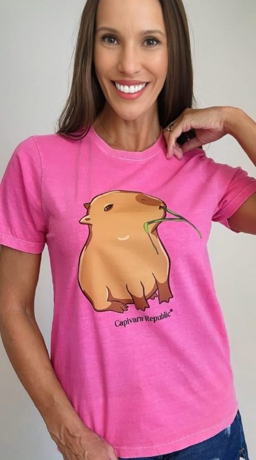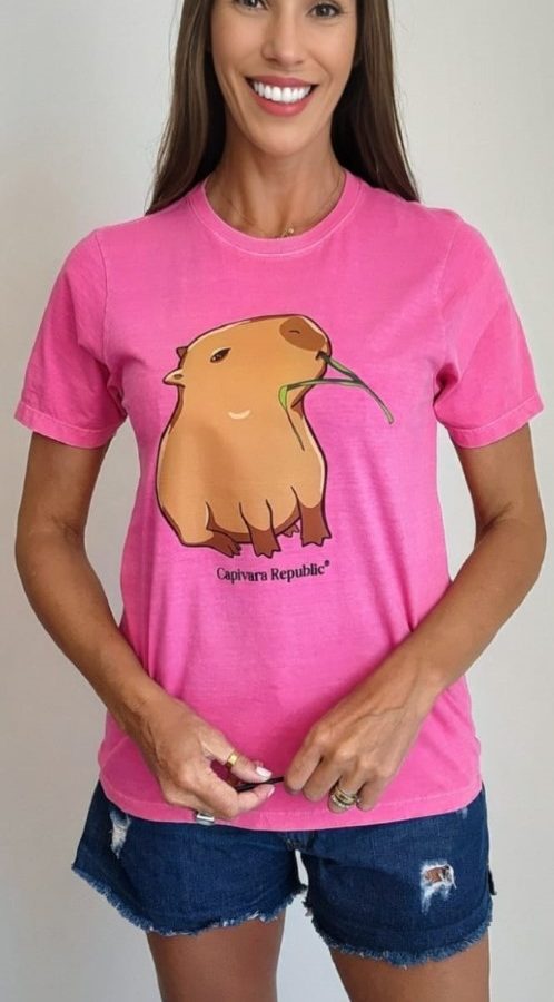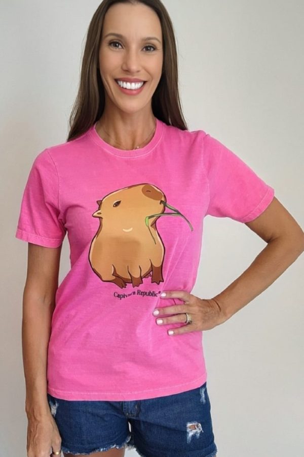 Esta estampa Capi Capim é primeira no nosso best-seller! Tanto adultos, quanto crianças escolhem a Capi Capim para ser sua primeira tee da coleção Capivara Republic!
