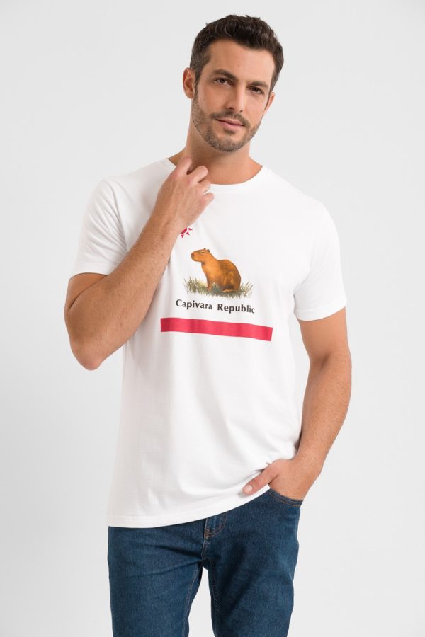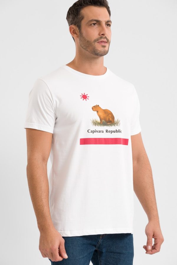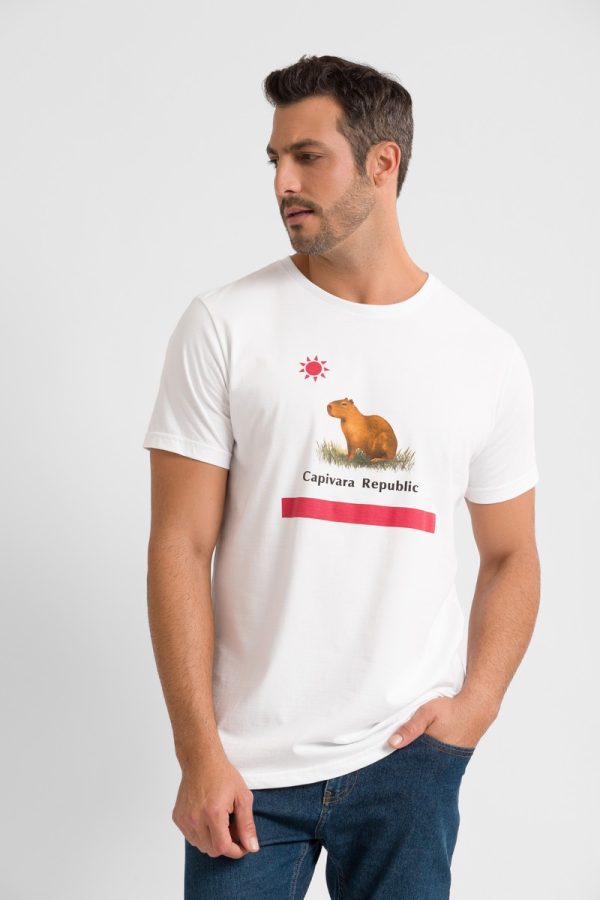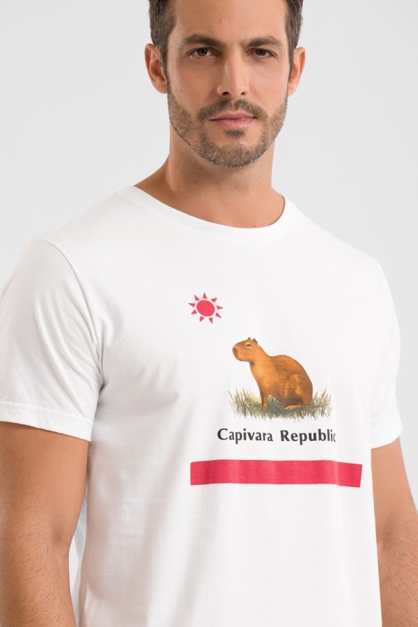Esta foi nossa primeira estampa! Assim nasceu a Capivara Republic! Víamos várias cidades e estados homenageando a fauna local, inspirados respeitosamente na Bandeira Californiana. Nossa amada Capivara também merece esta honra! Decidimos ampliar para uma Republica inteira dedicada às Capivaras – Capivara Republic