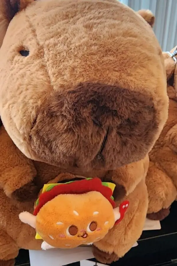 Com design exclusivo de capivara de pelúcia de alta qualidade e um toque divertido segurando com as patinhas o hambúrguer!