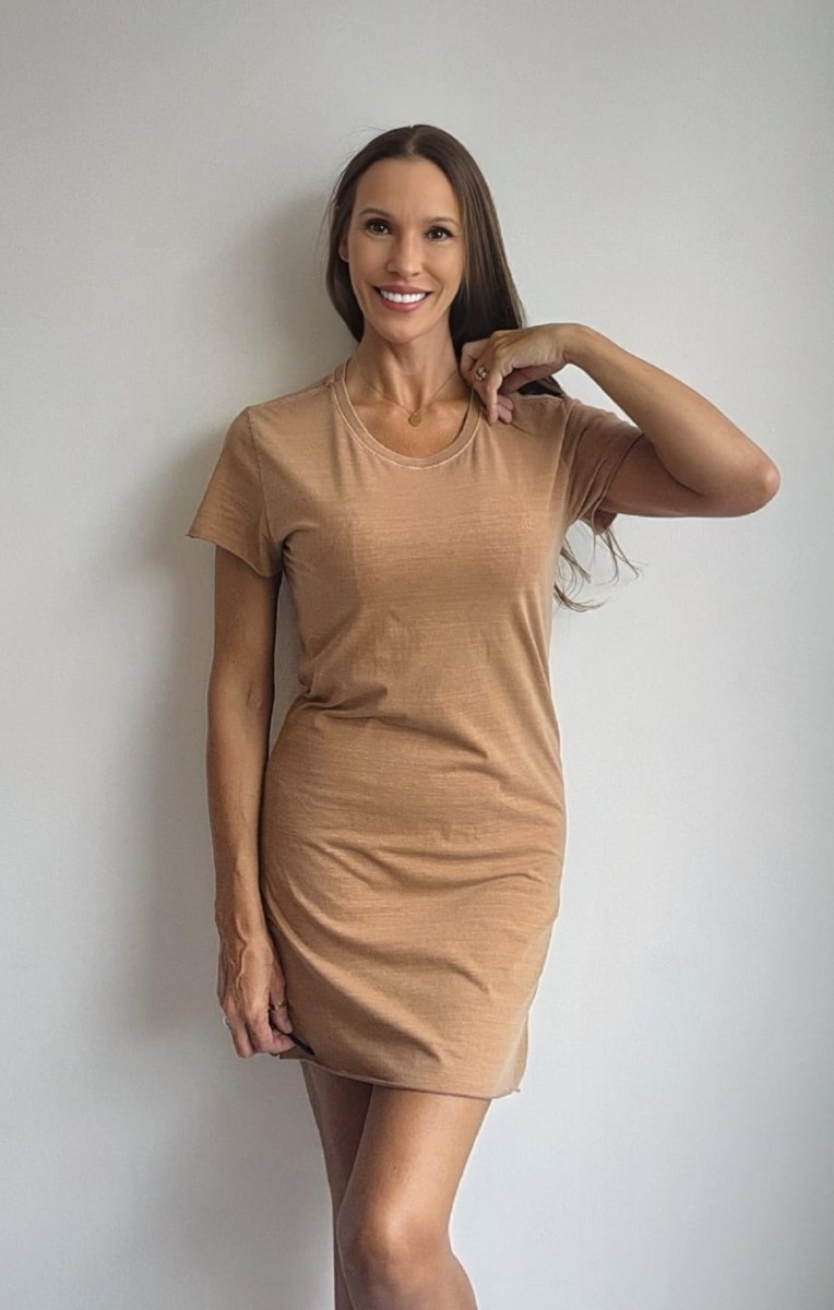 Vestido confeccionado com 100% algodão brasileiro penteado 30.1, oferecendo uma qualidade superior e um toque suave. O algodão penteado passa por um processo especial que remove as fibras mais curtas, resultando em um tecido mais resistente e durável. Além disso, a gramatura 30.1 proporciona uma leveza e conforto ideais para o uso diário.