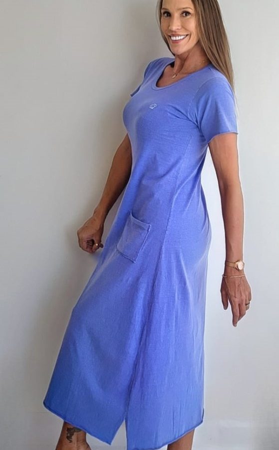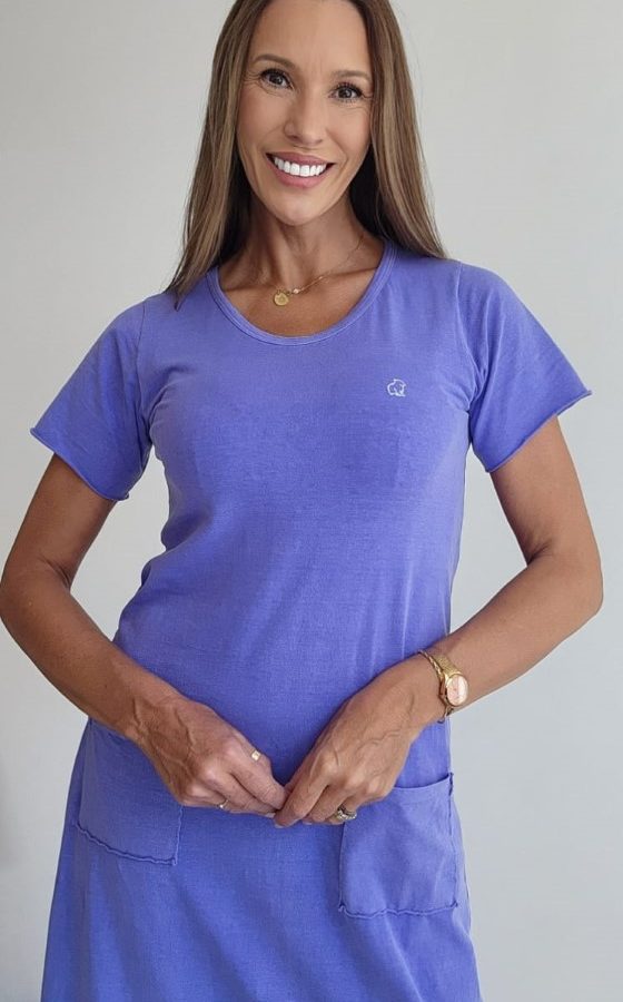 Vestido confeccionado com 100% algodão brasileiro penteado 30.1, oferecendo uma qualidade superior e um toque suave. O algodão penteado passa por um processo especial que remove as fibras mais curtas, resultando em um tecido mais resistente e durável. Além disso, a gramatura 30.1 proporciona uma leveza e conforto ideais para o uso diário.