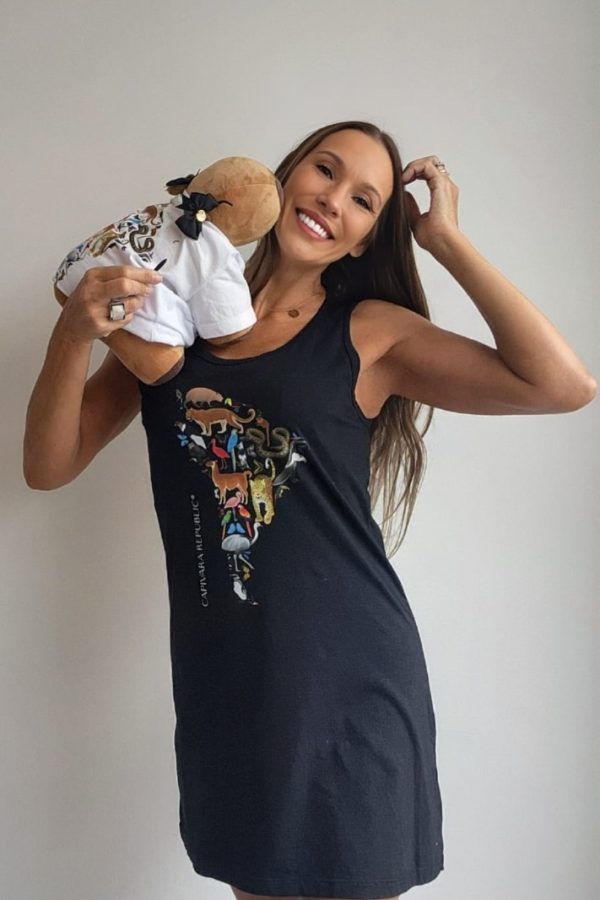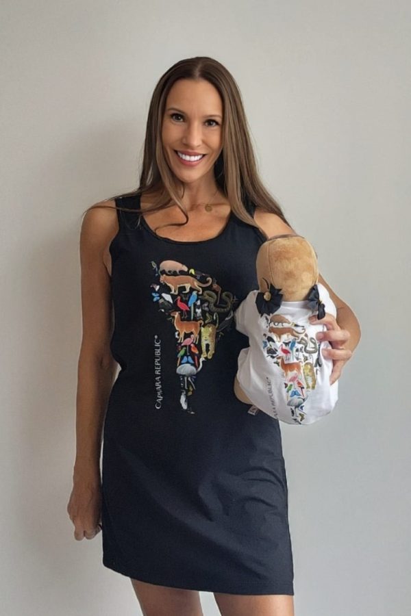 Vestido confeccionado com 100% algodão brasileiro penteado 30.1, oferecendo uma qualidade superior e um toque suave. O algodão penteado passa por um processo especial que remove as fibras mais curtas, resultando em um tecido mais resistente e durável. Além disso, a gramatura 30.1 proporciona uma leveza e conforto ideais para o uso diário.
