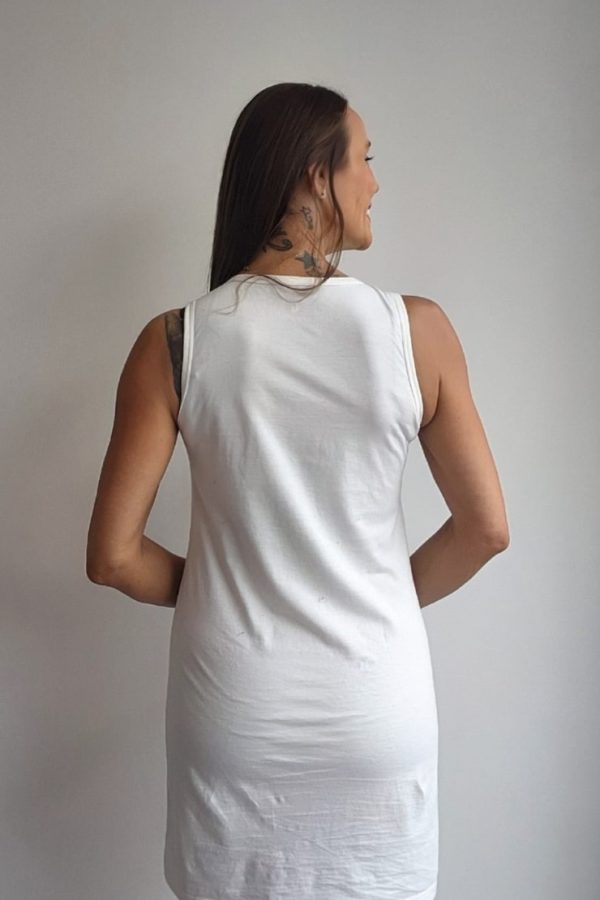 Vestido confeccionado com 100% algodão brasileiro penteado 30.1, oferecendo uma qualidade superior e um toque suave. O algodão penteado passa por um processo especial que remove as fibras mais curtas, resultando em um tecido mais resistente e durável. Além disso, a gramatura 30.1 proporciona uma leveza e conforto ideais para o uso diário.