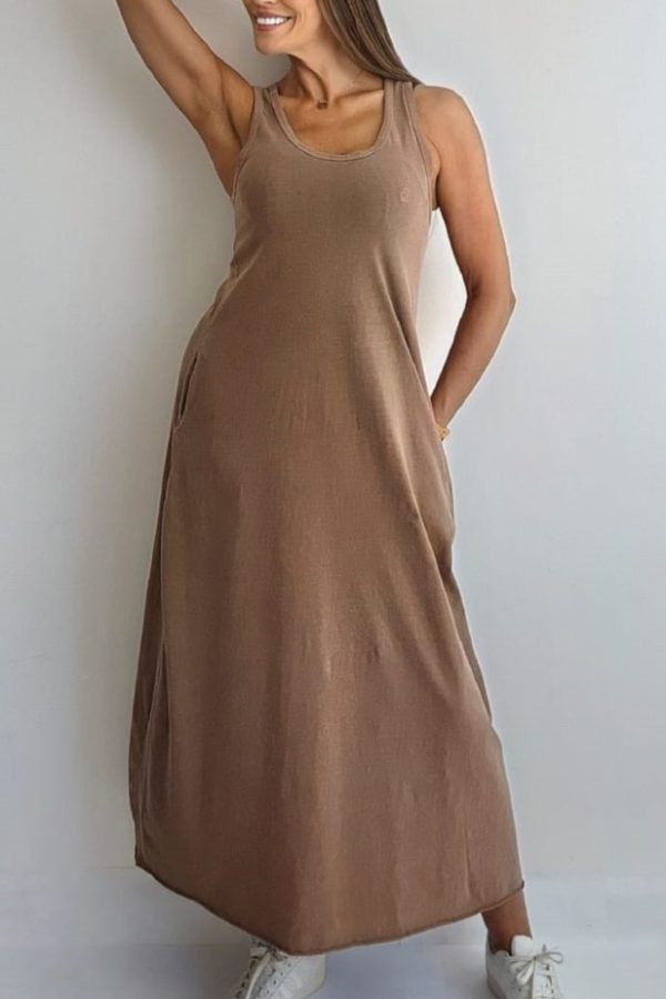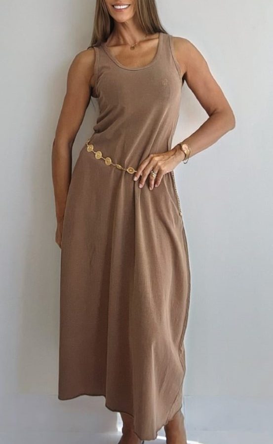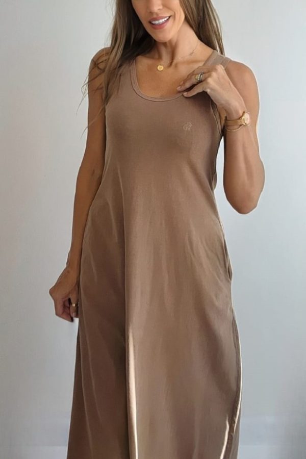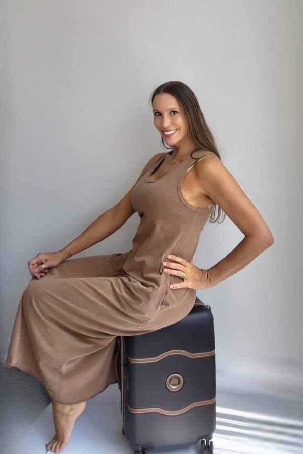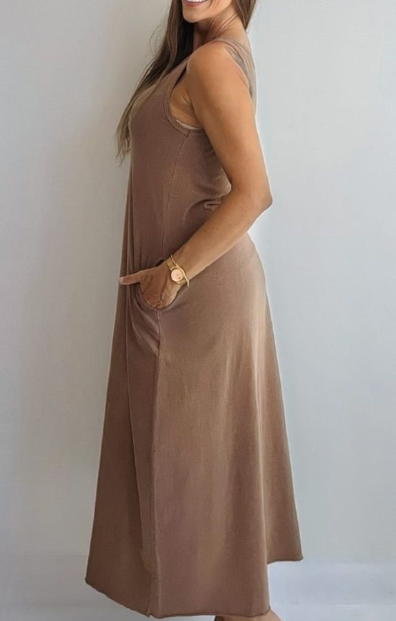Vestido com bolsos laterais e bastante volume, traz toda a tendência europeia BohoChic, que logo chegará a todos continentes, e, na cor eleita pela Pantone como a cor dominante para este ano e 2026, o Mocha Musse!