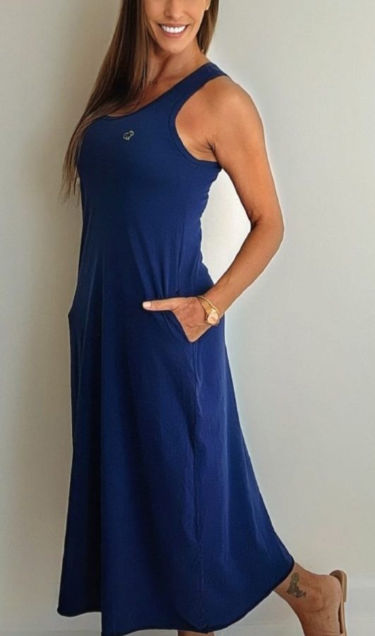 Vestido confeccionado com 100% algodão brasileiro penteado 30.1, oferecendo uma qualidade superior e um toque suave. O algodão penteado passa por um processo especial que remove as fibras mais curtas, resultando em um tecido mais resistente e durável. Além disso, a gramatura 30.1 proporciona uma leveza e conforto ideais para o uso diário.