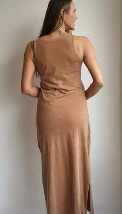 Vestido confeccionado com 100% algodão brasileiro penteado 30.1, oferecendo uma qualidade superior e um toque suave. O algodão penteado passa por um processo especial que remove as fibras mais curtas, resultando em um tecido mais resistente e durável. Além disso, a gramatura 30.1 proporciona uma leveza e conforto ideais para o uso diário.